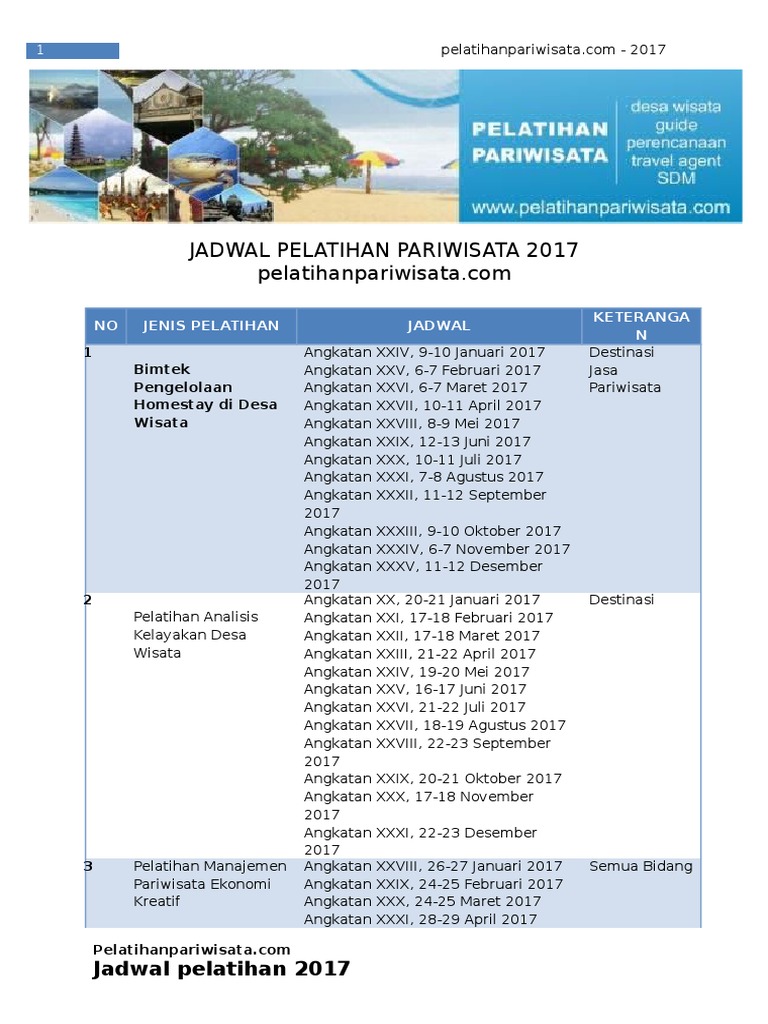 Jadwal Pelatihan Pariwisata 2017